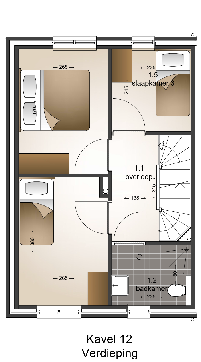 slaapkamers. De vaste trap naar de zolder leidt naar een grote ruimte waar de
