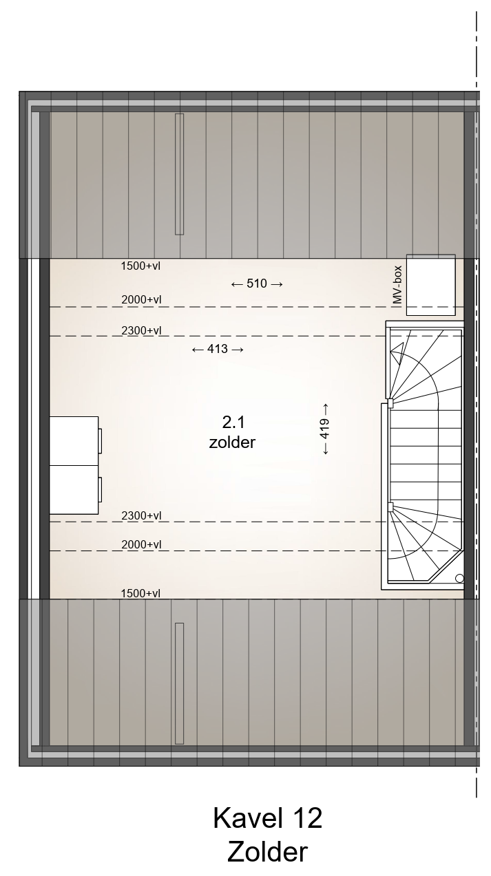 slaapkamers. De vaste trap naar de zolder leidt naar een grote ruimte waar de
